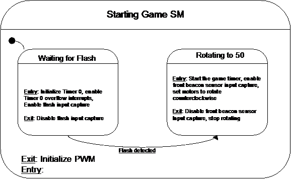 machine contains two states: Waiting for Flash, and Rotating to 50. At the