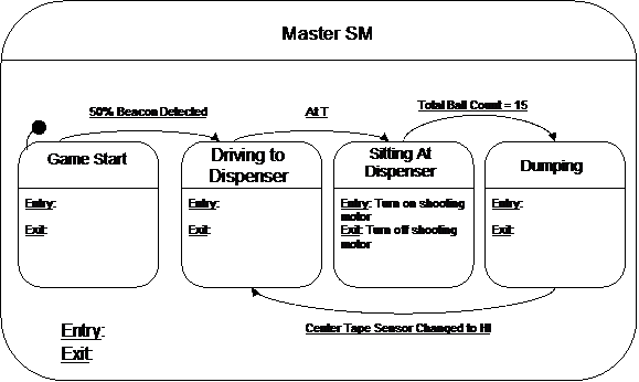 is exited when the 50 percent duty cycle beacon (over the ball dispenser) is detected.