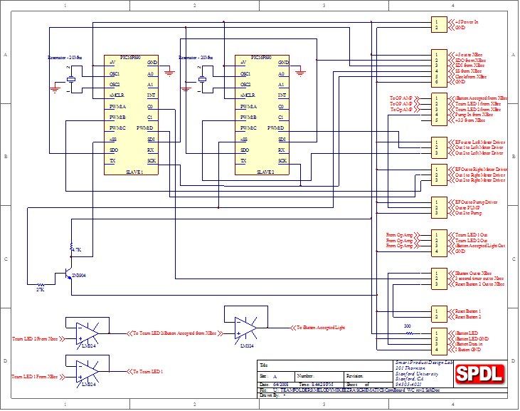 This circuit board houses the two motor drive PICs and acts as a junction point for all the ancillary electrical components and circuit boards on the watercraft.