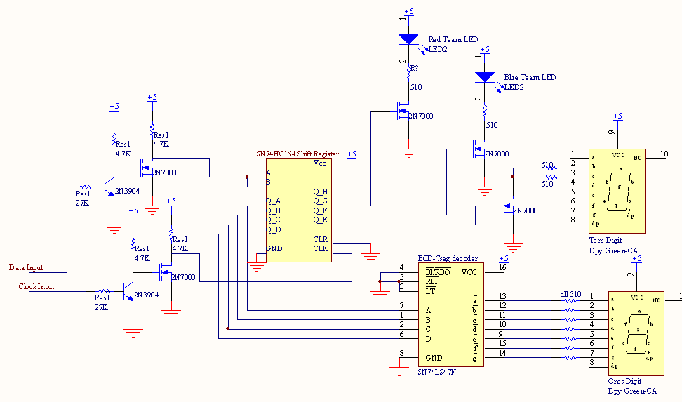 on the communications PIC, the craft number display and team affiliation LEDs are controlled by a shift register and BCD to