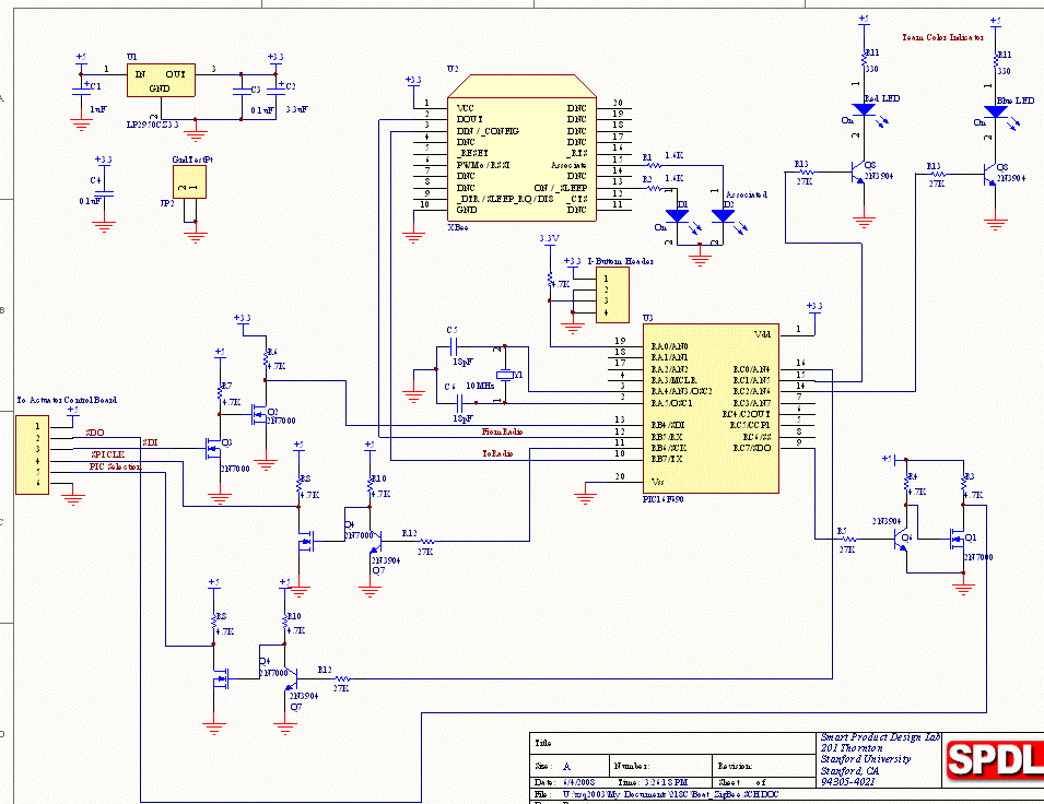 Both the ZigBee and PIC on this board use 3.3V logic, thus conversion circuit is needed when communication to other boards, which use 5V logic.